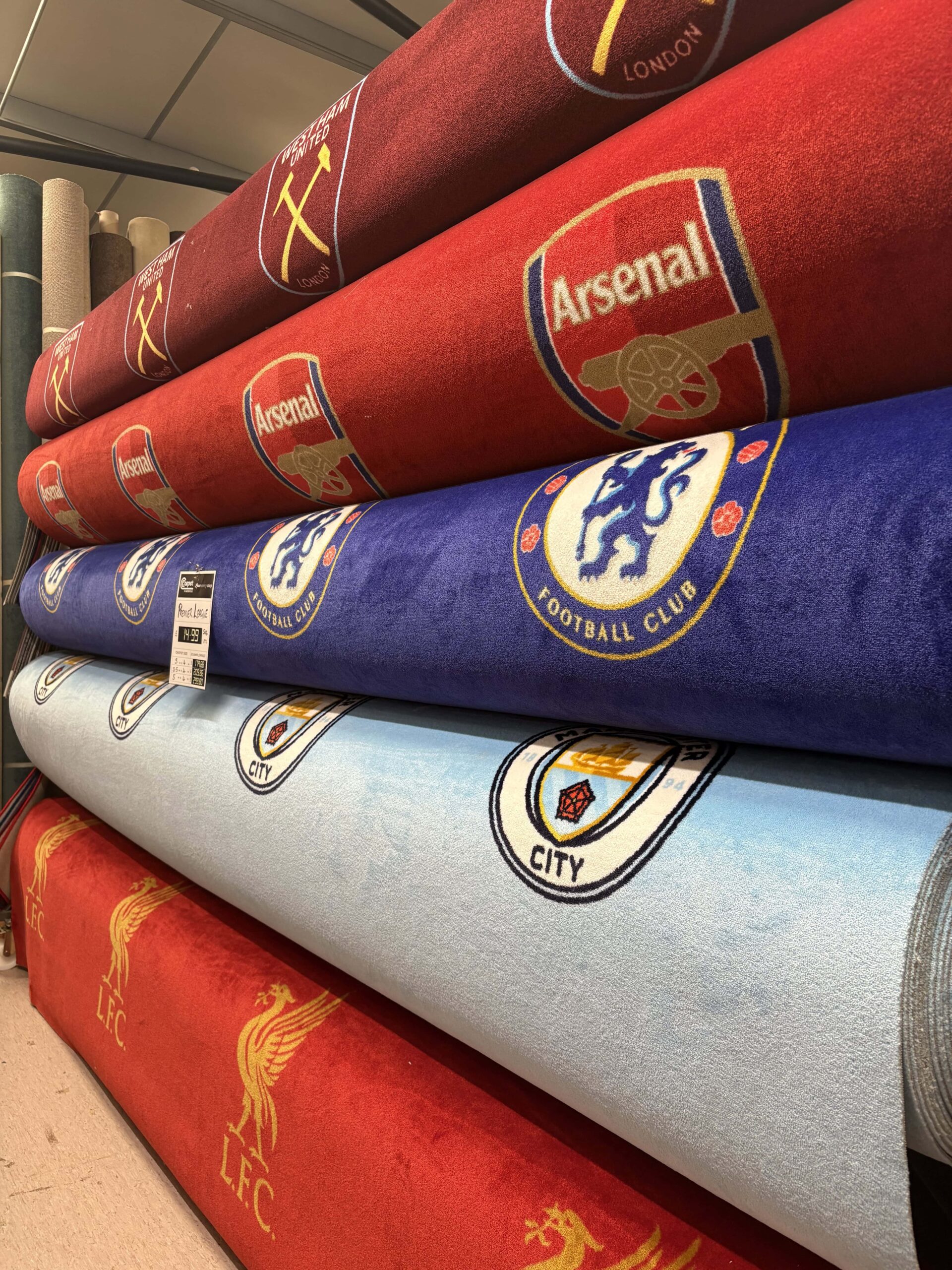 Bring the energy of the stadium into your home with our Premier League Carpet, featuring officially inspired designs from top clubs including West Ham, Arsenal, Chelsea, Manchester City, and Liverpool. Perfect for bedrooms, games rooms, home cinemas, or man caves, these carpets combine football passion with practical everyday durability.